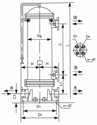 二、GLL型立式冷卻器尺寸示意圖